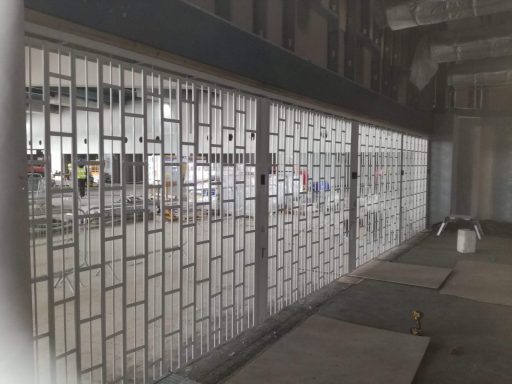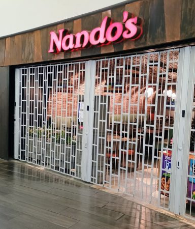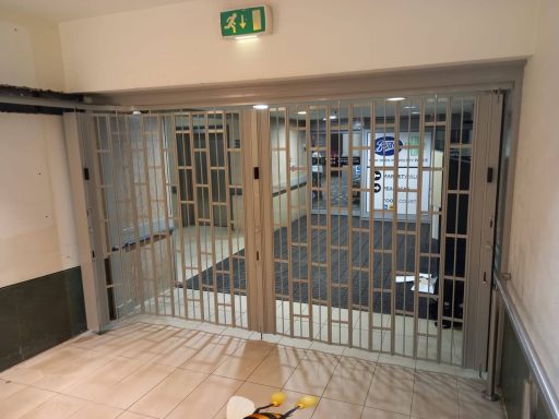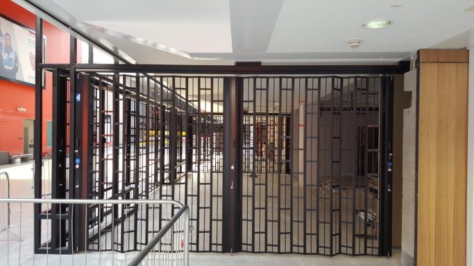 The manually operated sliding folding shutter retracts smoothly and stacks compactly to the side, maximising access and minimising obstruction during business hours. - Minimal Headroom Required: