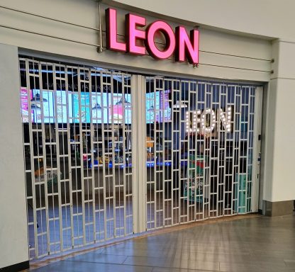When you need to secure commercial or public spaces without sacrificing visibility and airflow, the FlexiGlide® Vision Guard Sliding Folding Security Shutter by HVP Security Shutters is the industry’s most popular open style sliding shutter. Engineered for high-traffic environments, the Vision Guard model offers a perfect balance of robust security and open space aesthetics, making it the preferred choice for shopping centres, airports, schools, and retail environments across the UK.