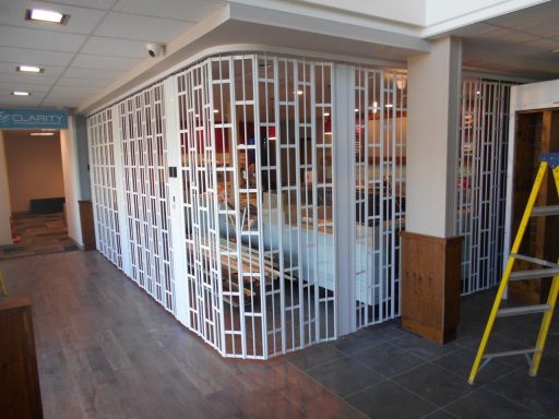 Perfect for securing wide or curved openings, the Vision Guard is frequently used for shopfronts, counters, reception desks, kiosks, and serveries. Its flexible design means it fits where traditional roller shutters can’t. - Sliding Folding Mechanism:
