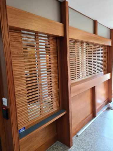 Because our wooden roller shutters are made from real timber, they must be installed in dry, interior environments. They are not suitable for external or wet areas.