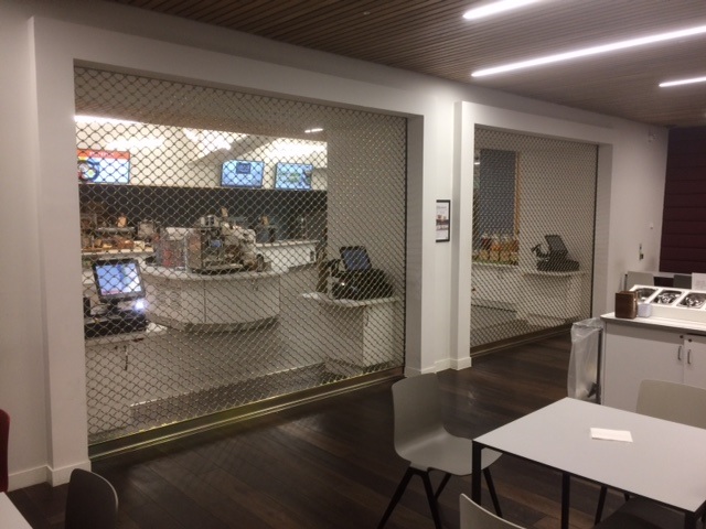 Best for: Wide, curved, or irregular shop fronts where a traditional roller shutter is impractical.